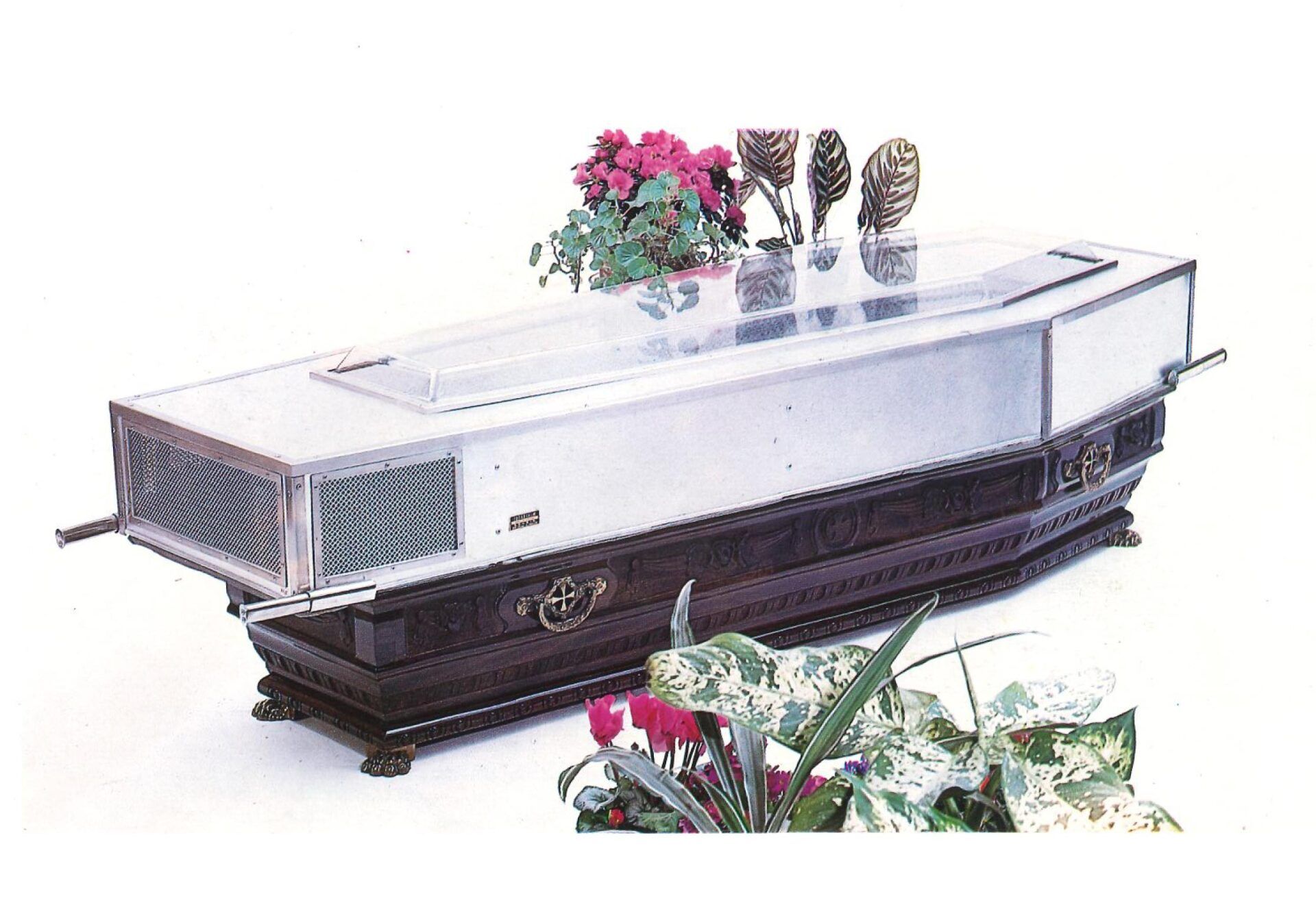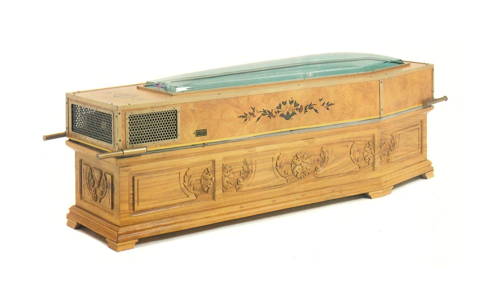 Grazie poi ad un coperchio trasparente termico era possibile rendere visibile ai congiunti il corpo del defunto.